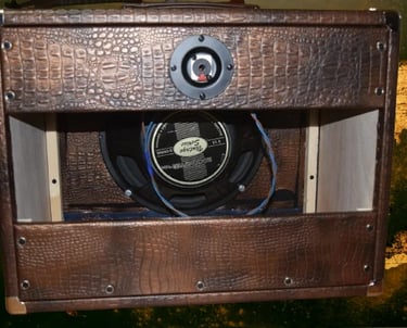 Version de base unifiée, mais avec des options à déterminer pour l'ajout d'un similicuir avec relief ou un dessin imprimé ou tout simplement avec le même simili cuir que le baffle.